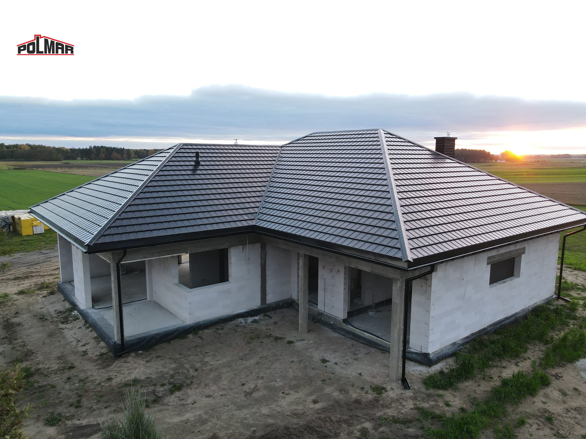Blachodachówka Trend została zaprojektowana z myślą o trwałości oraz odporności na trudne warunki atmosferyczne. Powłoka Superior HB skutecznie chroni dach przed korozją, promieniowaniem UV oraz uszkodzeniami mechanicznymi. To rozwiązanie, które sprawdzi się zarówno w nowoczesnych, jak i tradycyjnych domach. Kolor 9005, czyli głęboka czerń, nadaje całości wyjątkowego, prestiżowego charakteru. Warto podkreślić, że blachodachówka Trend dostępna jest także w innych wariantach kolorystycznych, co pozwala dopasować dach do indywidualnych potrzeb.