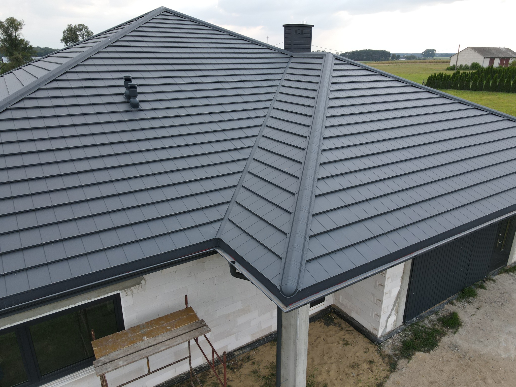 Nowoczesne pokrycie dachu – Budmat Garda i rynna stalowa Flamingo