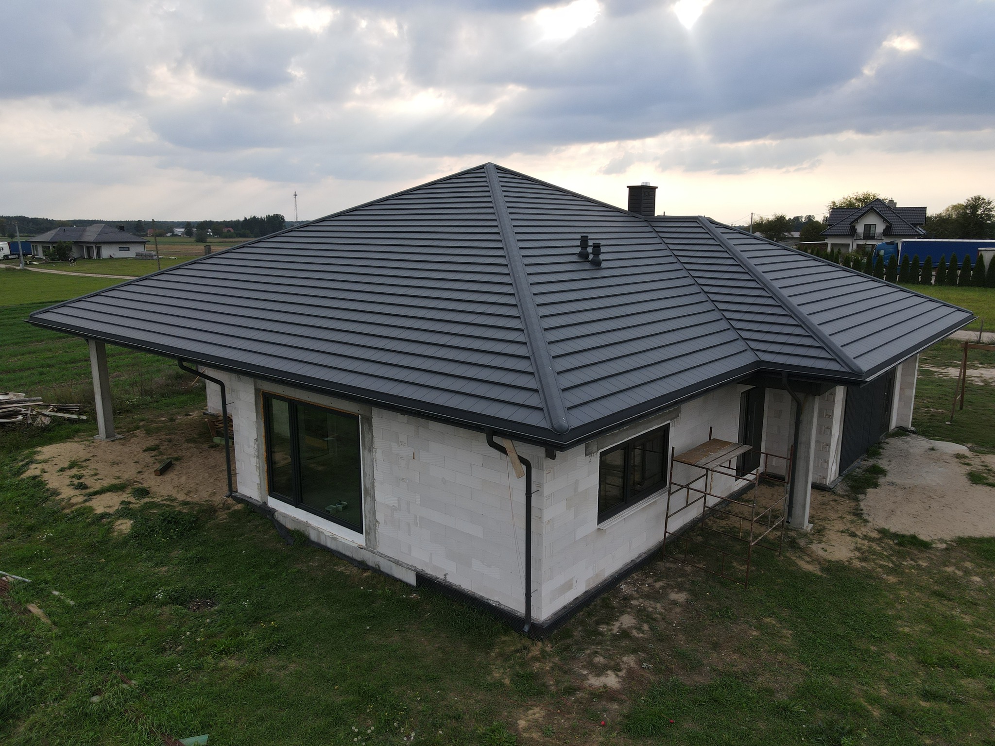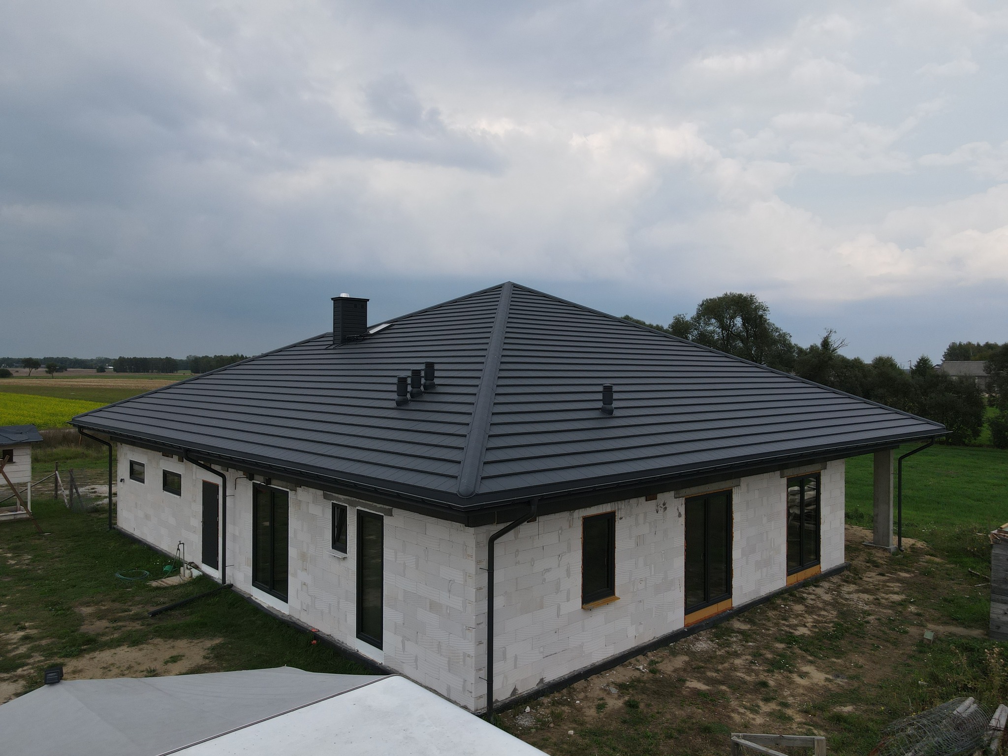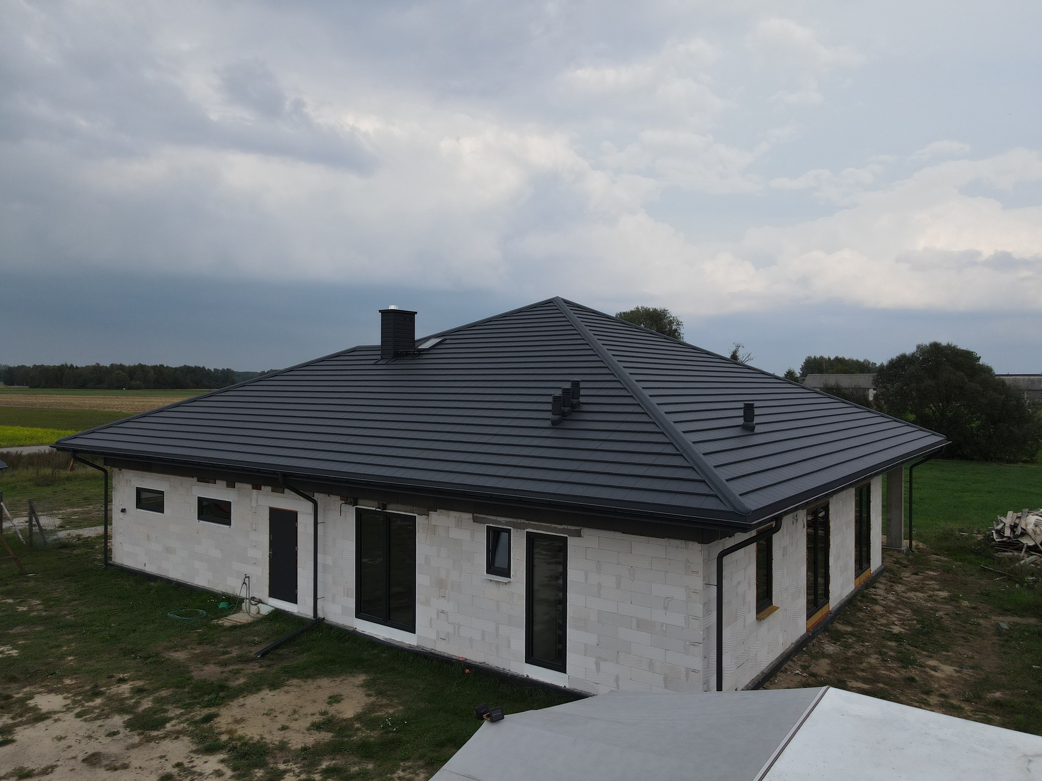 Nowoczesne pokrycie dachu – Budmat Garda i rynna stalowa Flamingo